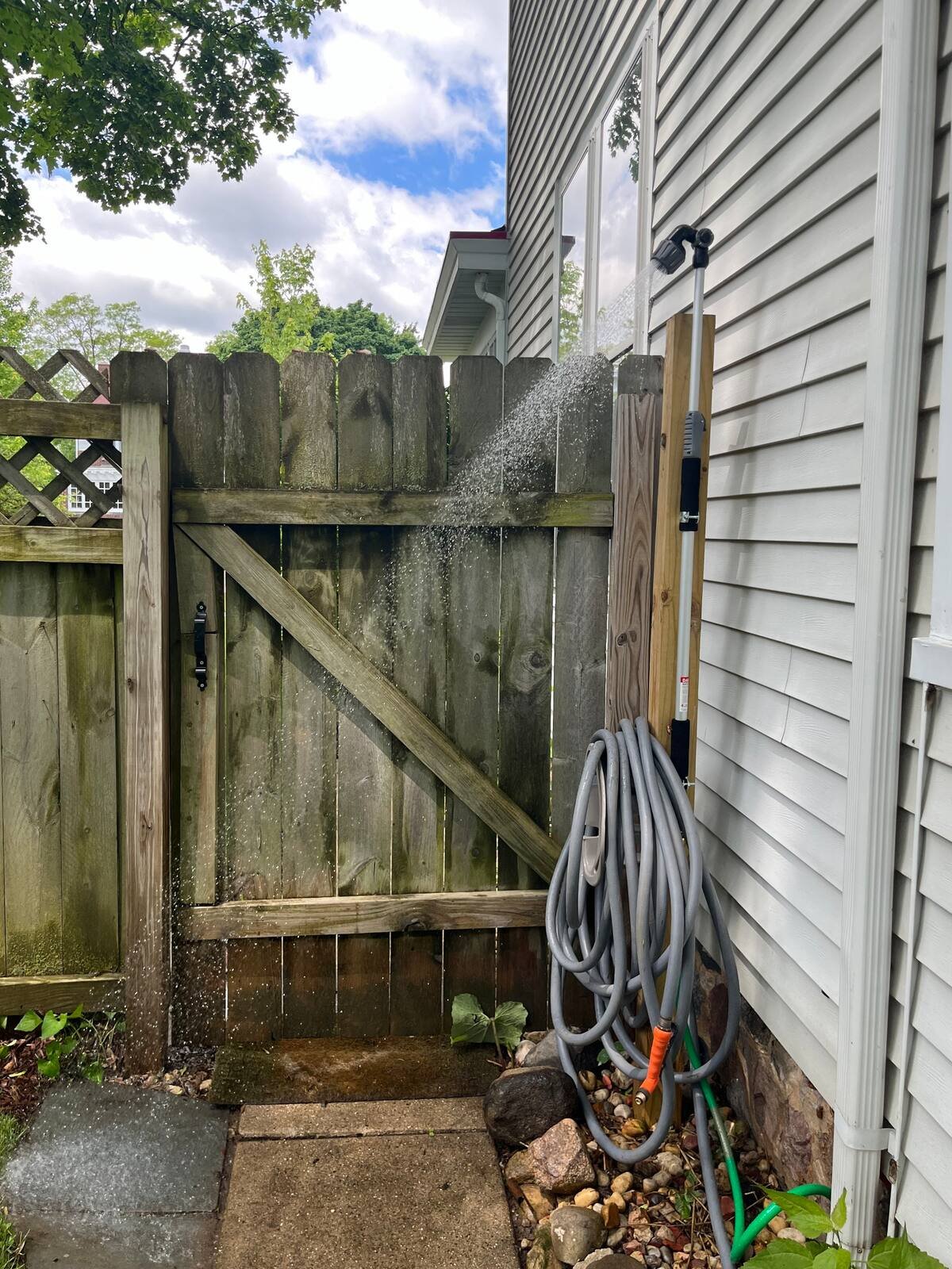 Outdoor shower/feet wash after a great at the beach. Burrrrr.